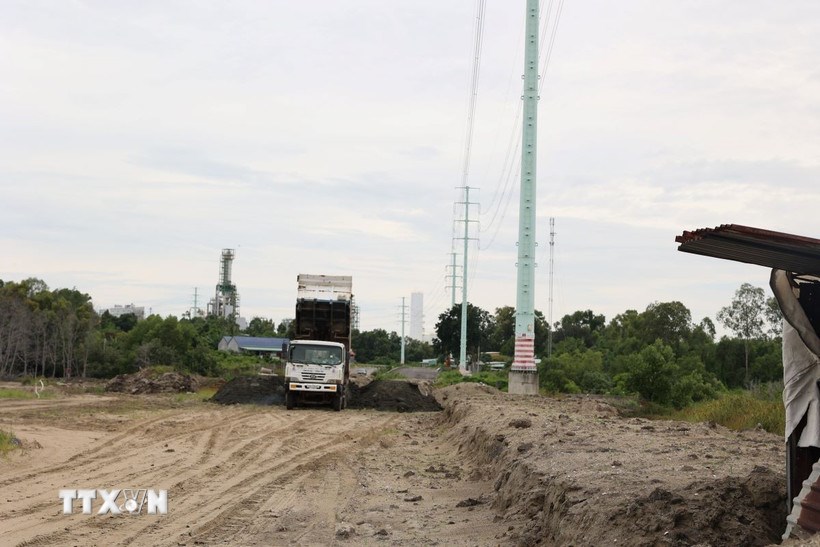 Điểm đầu của dự án đường Long Sơn-Cái Mép, điểm nối khu công nghiệp dầu khí Long Sơn, đã cơ bản hoàn thành. (Ảnh: TTXVN)Đại diện Ban Quản lý dự án Giao thông khu vực và Chuyên ngành nông nghiệp Bà Rịa-Vũng Tàu cho biết, đơn vị đang tập trung đôn đốc các nhà thầu tăng cường mũi thi công, tổ chức làm việc 3 ca 4 kíp để bù tiến độ.